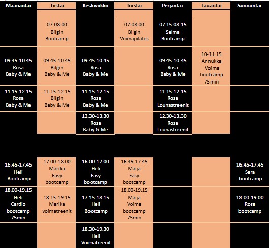 Jos haluat hypätä mukaan kesken kauden laskutamme sinulta vain jäljellä olevat tunnit – älä silloin välitä ostoskorin summasta sillä päivitämme laskun käsin. Voit käyttää maksuun myös kaikkia liikuntaetuja (Smartum, E-passi, Edenred).